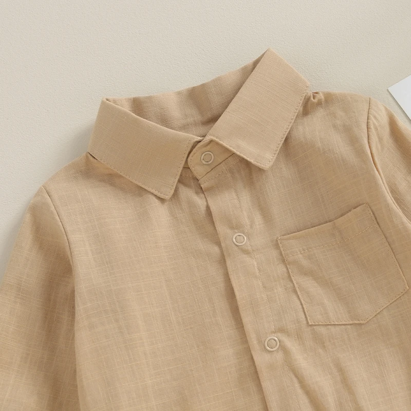 Infant Baby Boy Gentleman Romper Solid Color Long-Sleeved Lapel Front Button Jumpsuit with Pocket Toddler Clothes