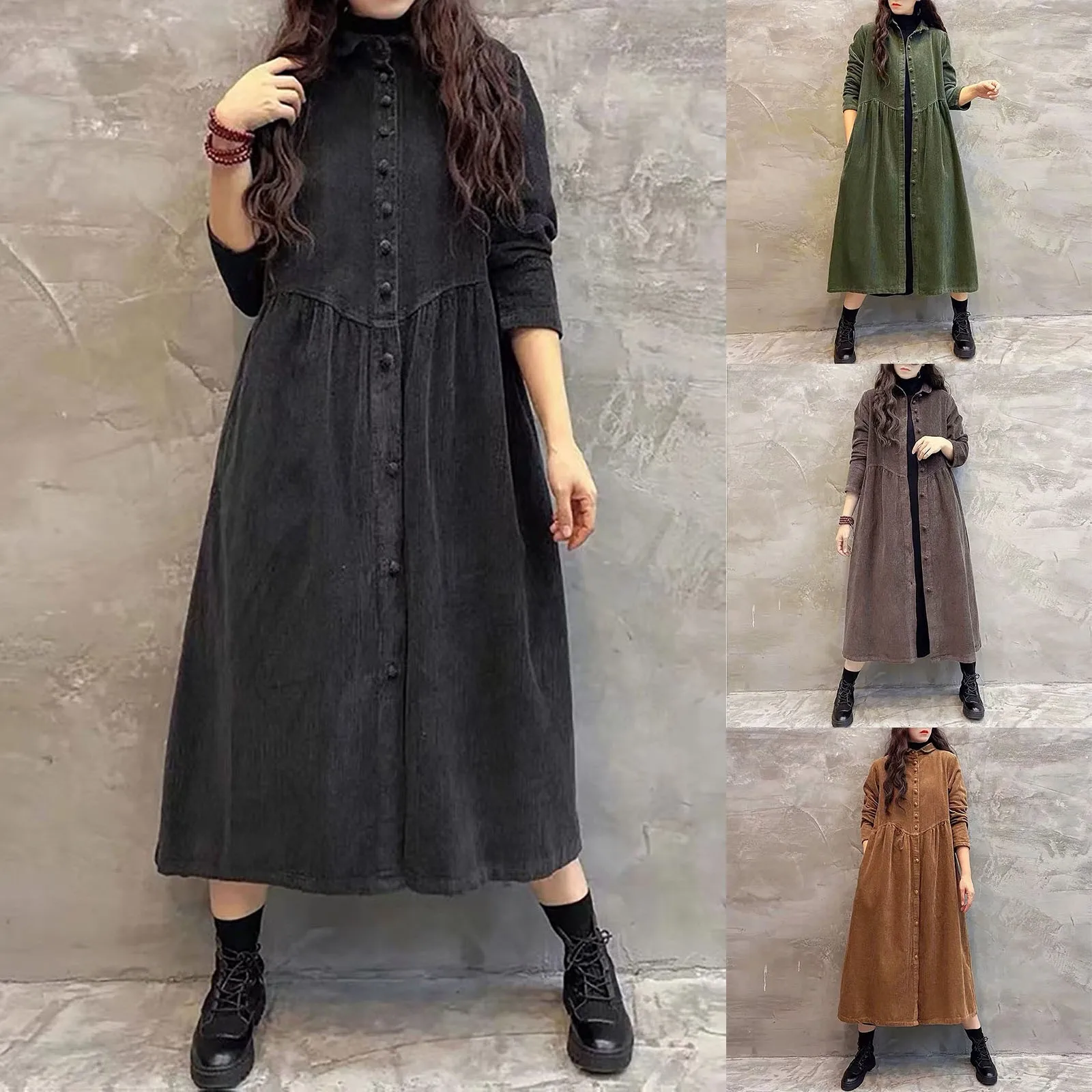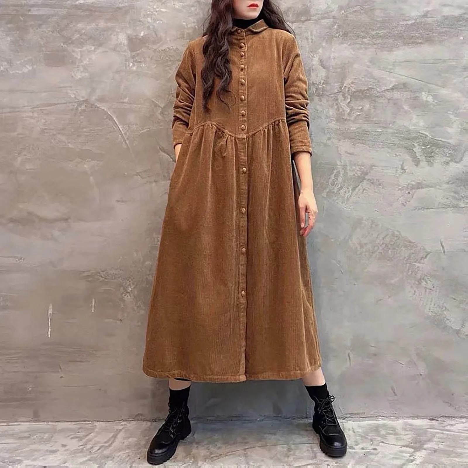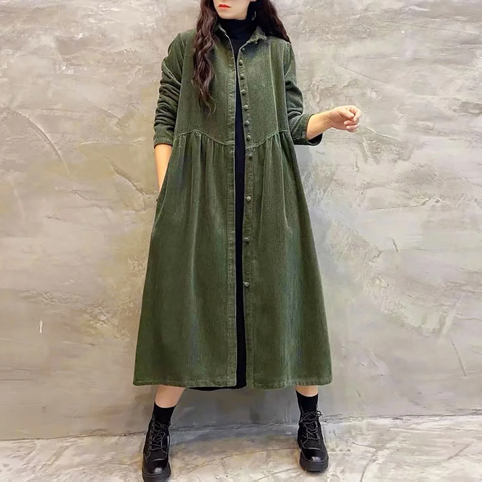 Women Simple Coats Solid Color Long Sleeve Corduroy Inspiration Thick Wrinkled Plus Size Coats