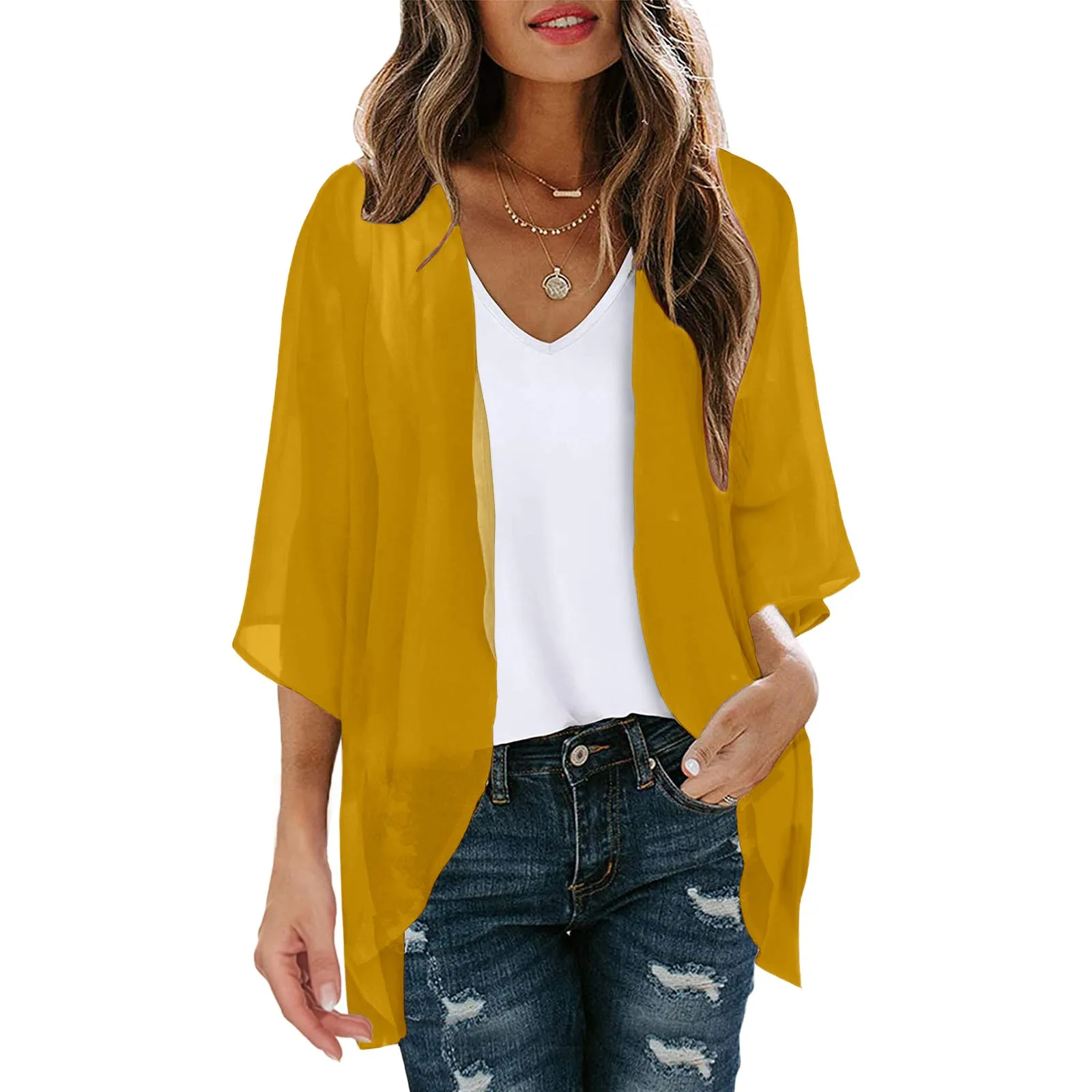 Solid and elegant cardigan, casual summer plus size tops, beach cover ups, chiffon shirts