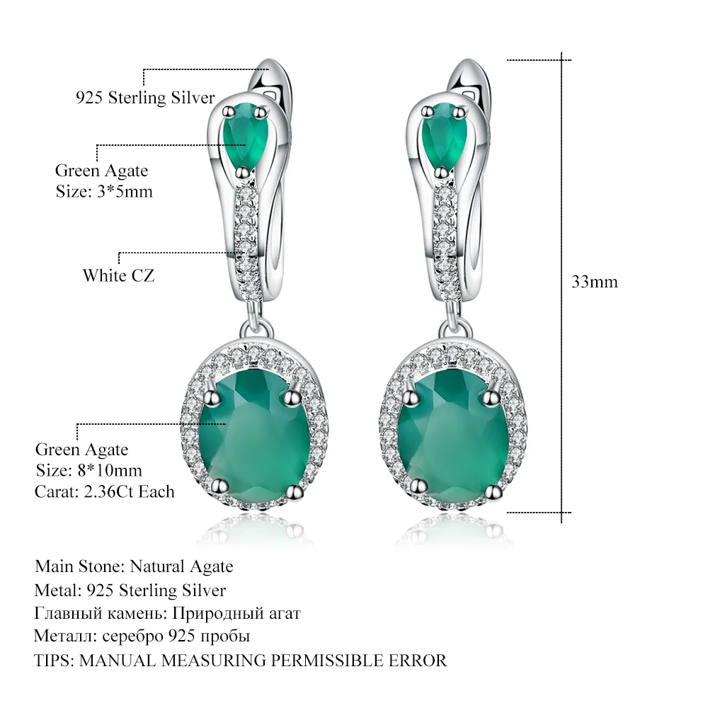 Gem’s Ballet 5.15Ct Natural Green Agate Vintage Earrings 925 Sterling Silver Gemstone Drop Earrings For Women Fine Jewelry