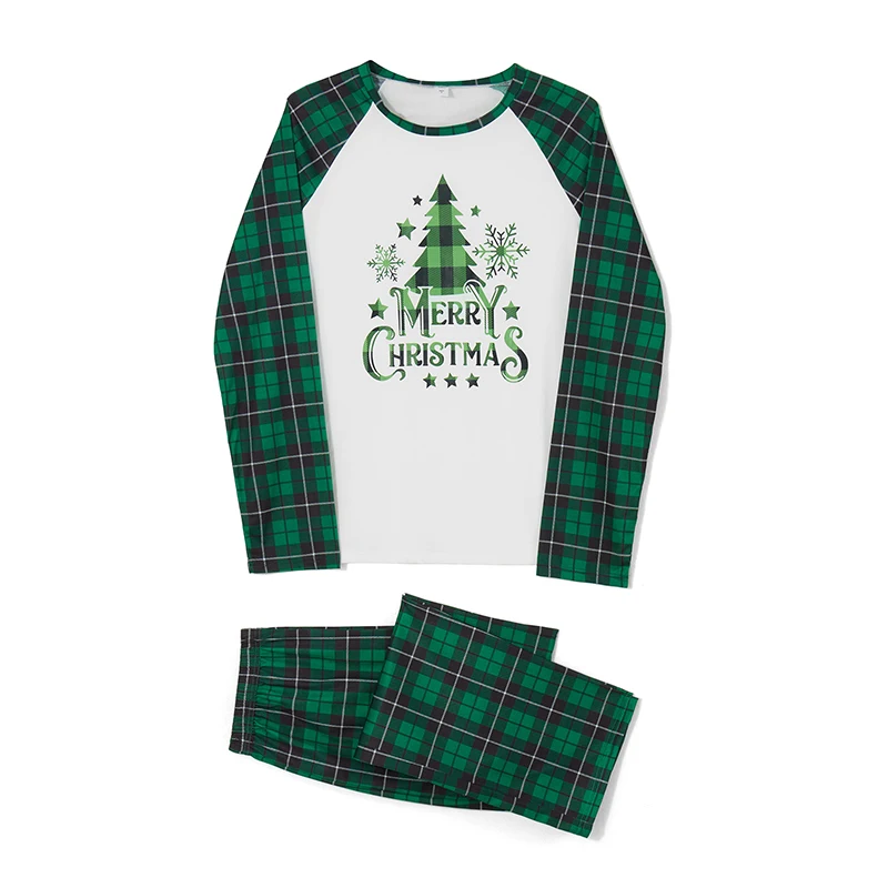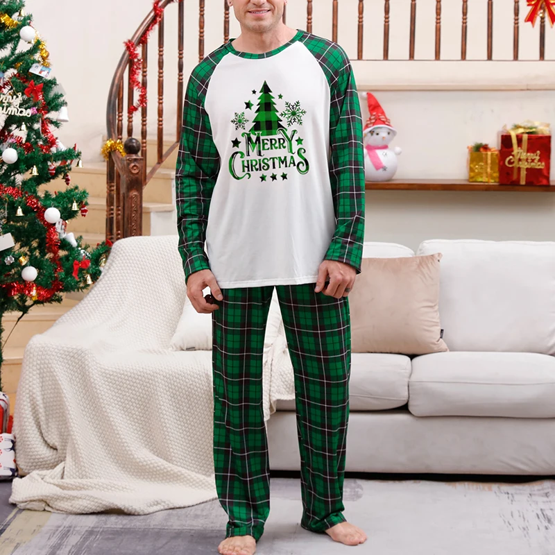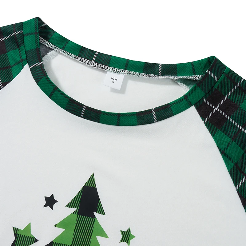 Christmas Pajamas for Family Long Sleeve Tree Print Tops + Buffalo Plaid Pants Set Winter Sleepwear
