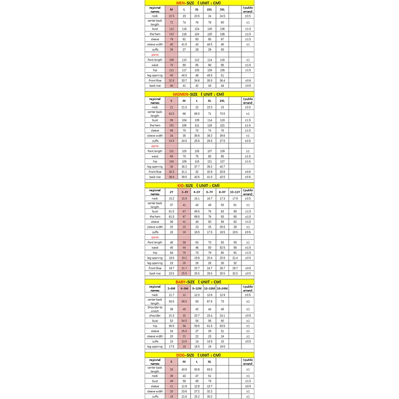 4-5 Years Tops Length: 46.5 / 18.31 Bust: 72.5 / 28.54 Waist: 52 / 20.47 Pants Length: 64 / 25.20