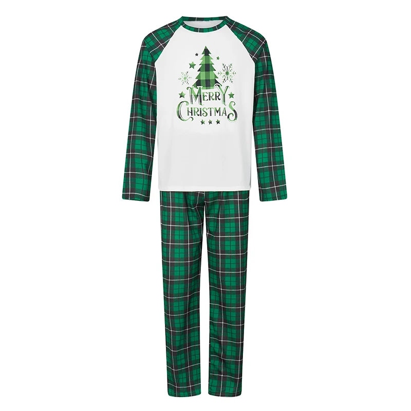 Christmas Pajamas for Family Long Sleeve Tree Print Tops + Buffalo Plaid Pants Set Winter Sleepwear