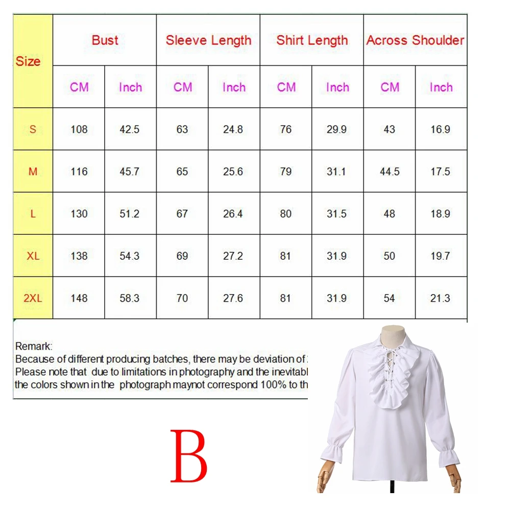 Men White Ruffled Jabot Renaissance Medieval Poet Pirate Vampire Colonial Gothic Shirt Tops