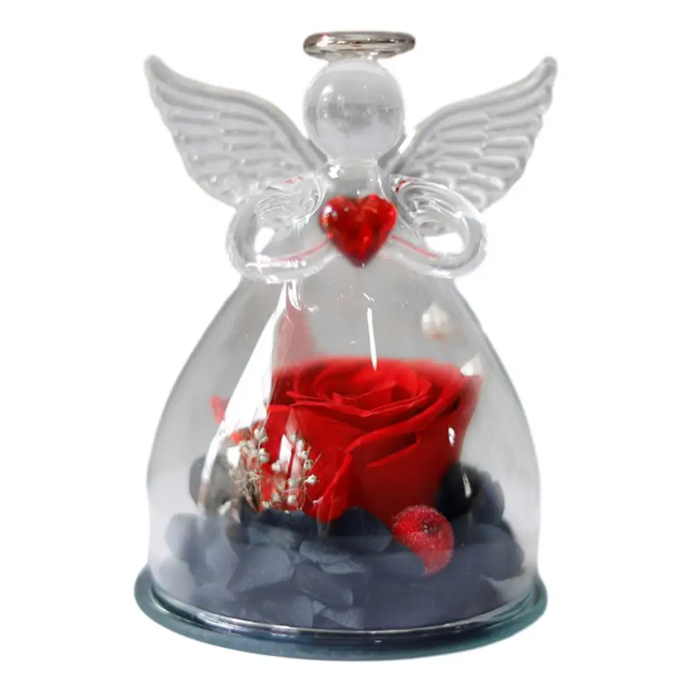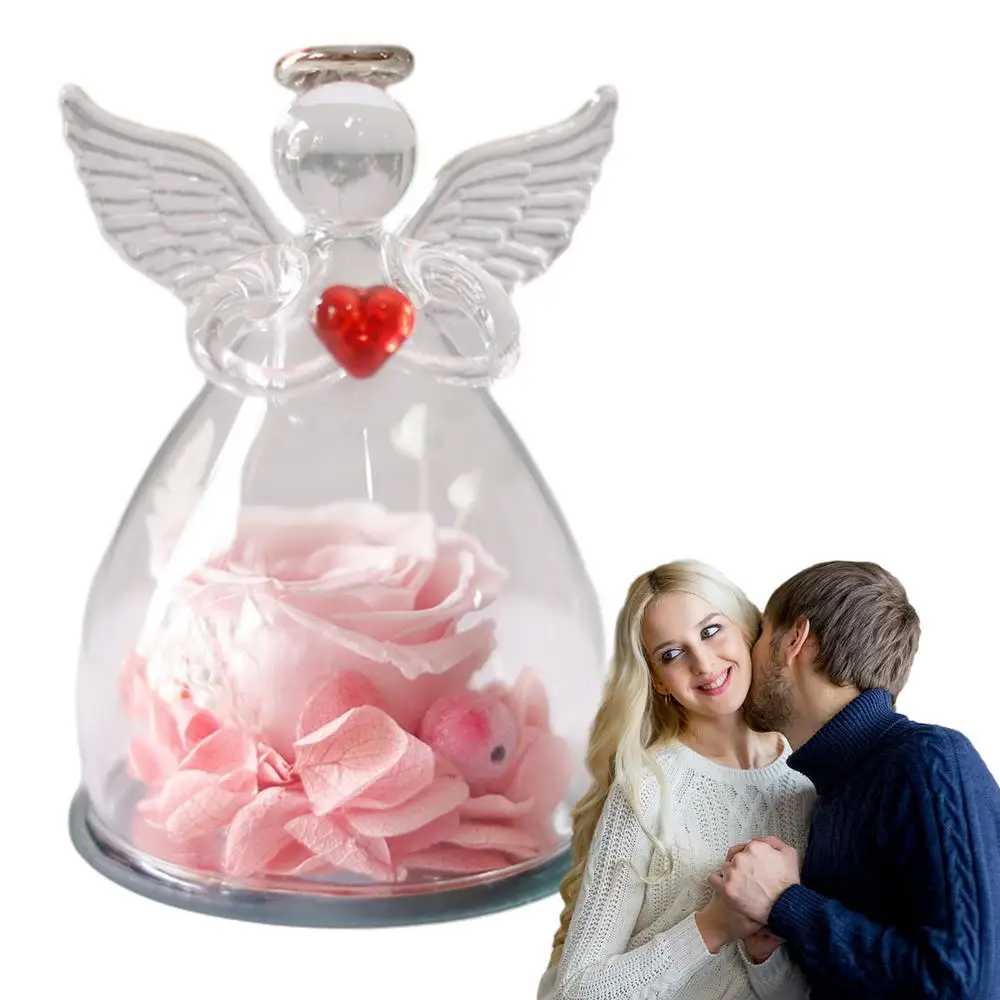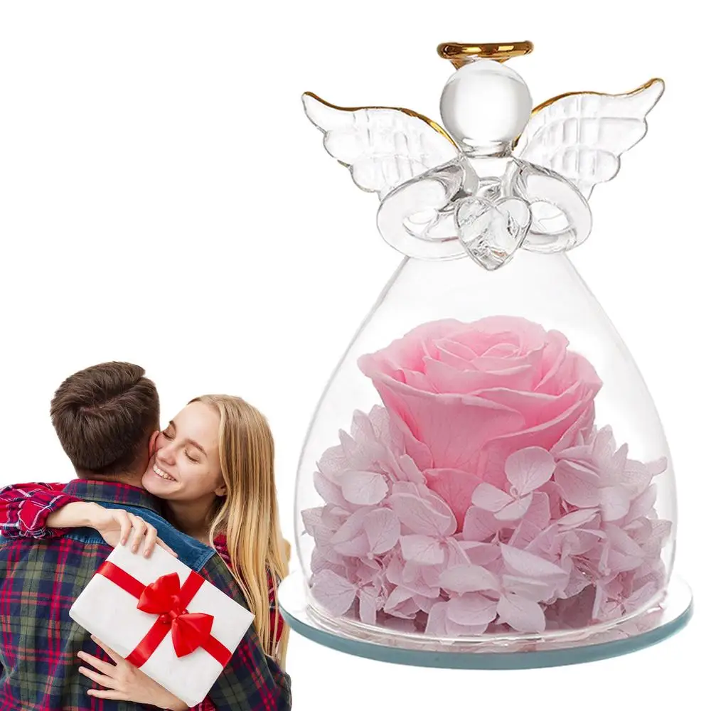 Preserved Rose In Angel Glass Cover Wedding Eternal Flower Christmas Valentine Day Mothers Day Gifts For Women Gifts Mothers