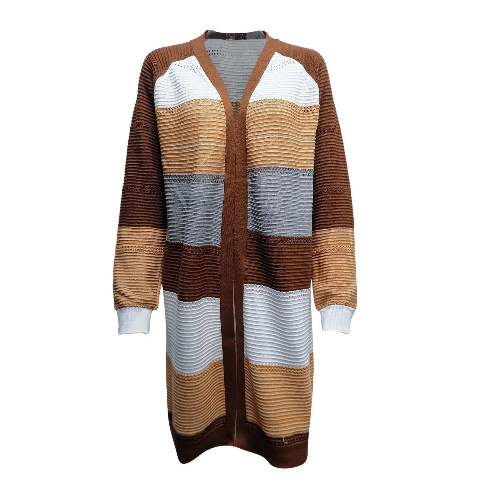 Womens Boho Open Front Cardigan Colorblock Long Sleeve Loose Knit Lightweight Sweaters Features: