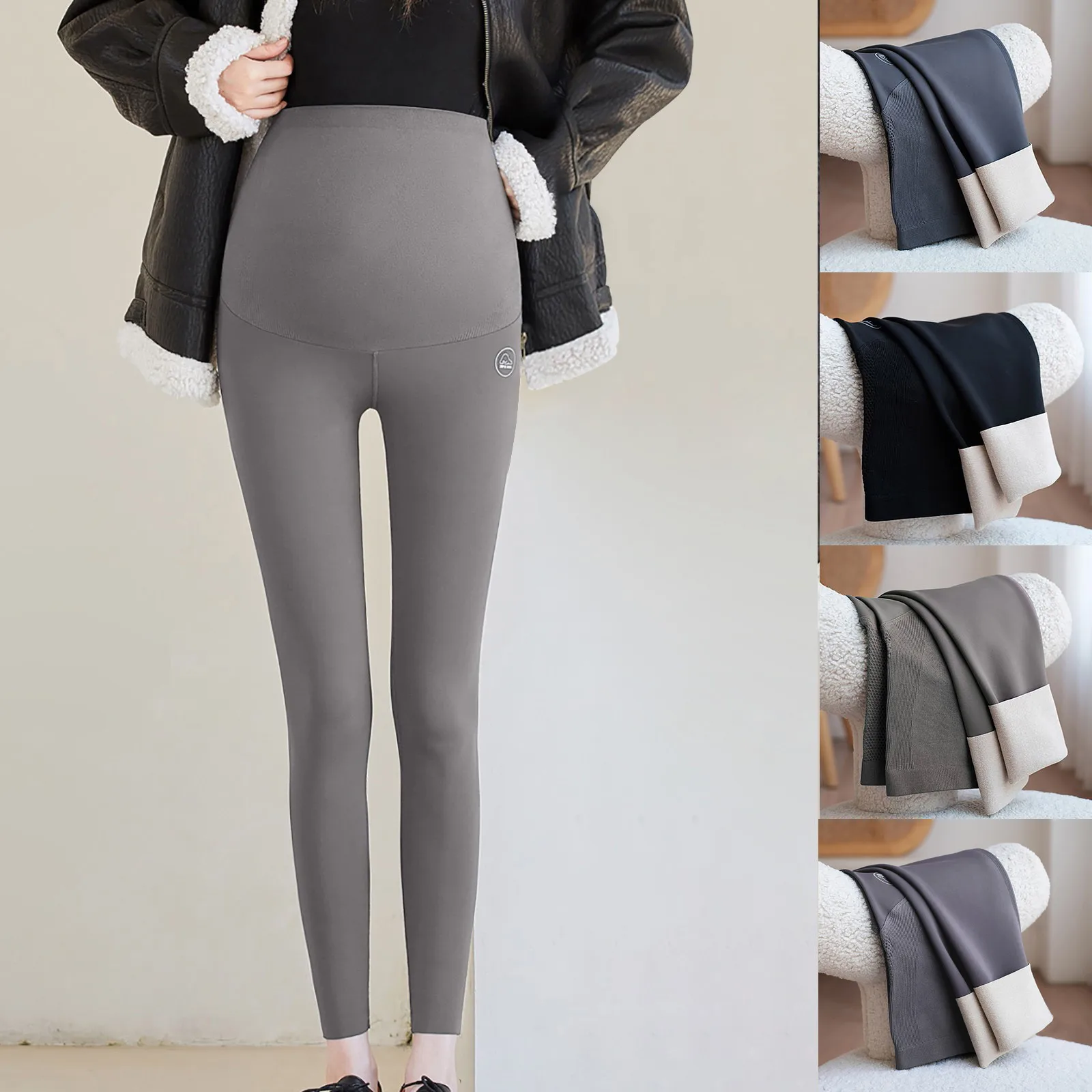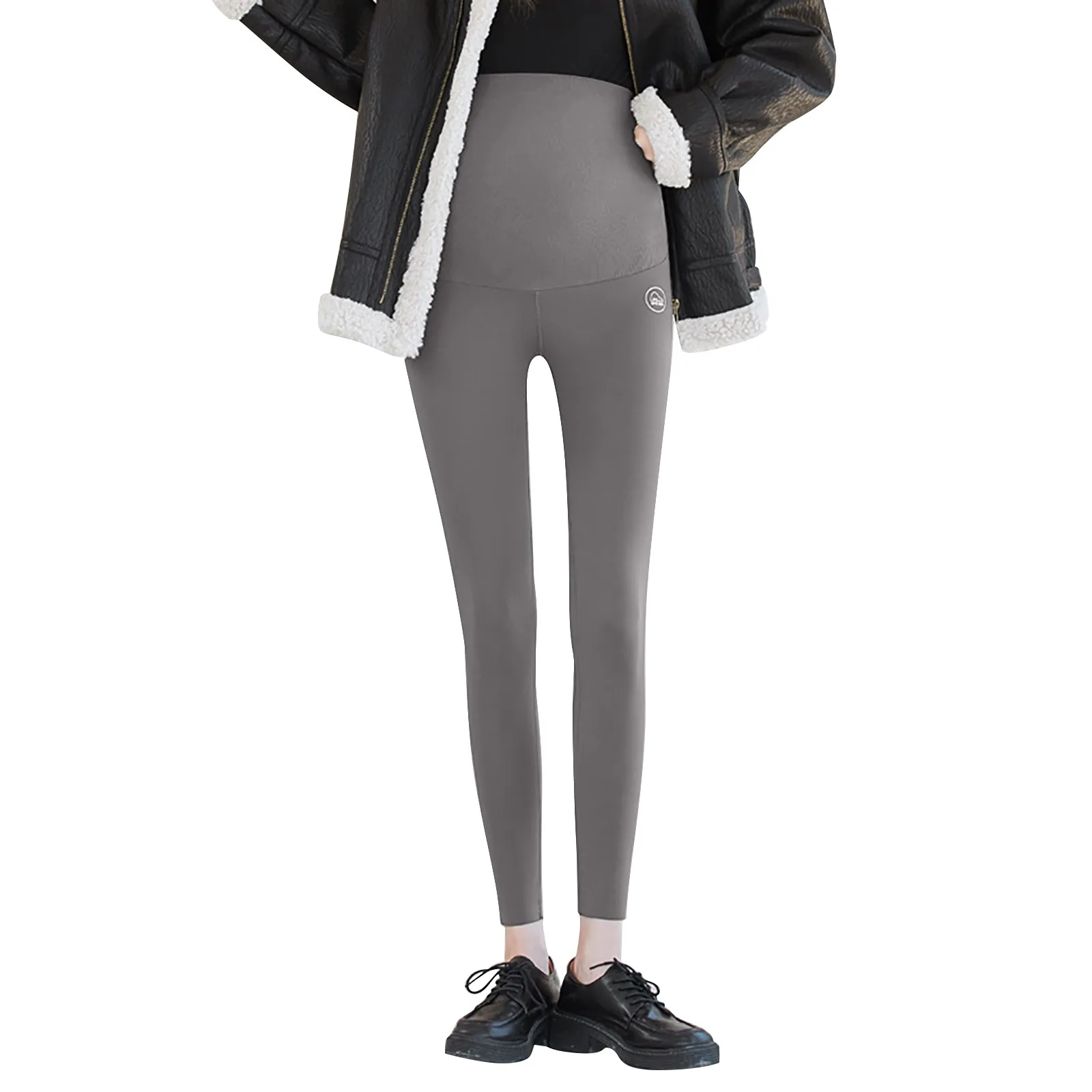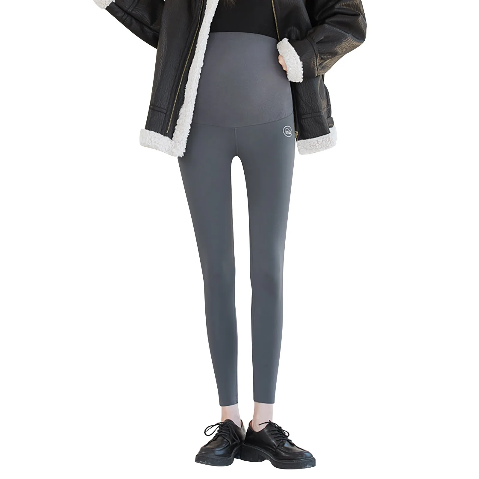 Women Plus Size Velvet Thickening Maternity Wear Belly Pants Ninth Pants Leather Pants Pregnant Leggings
