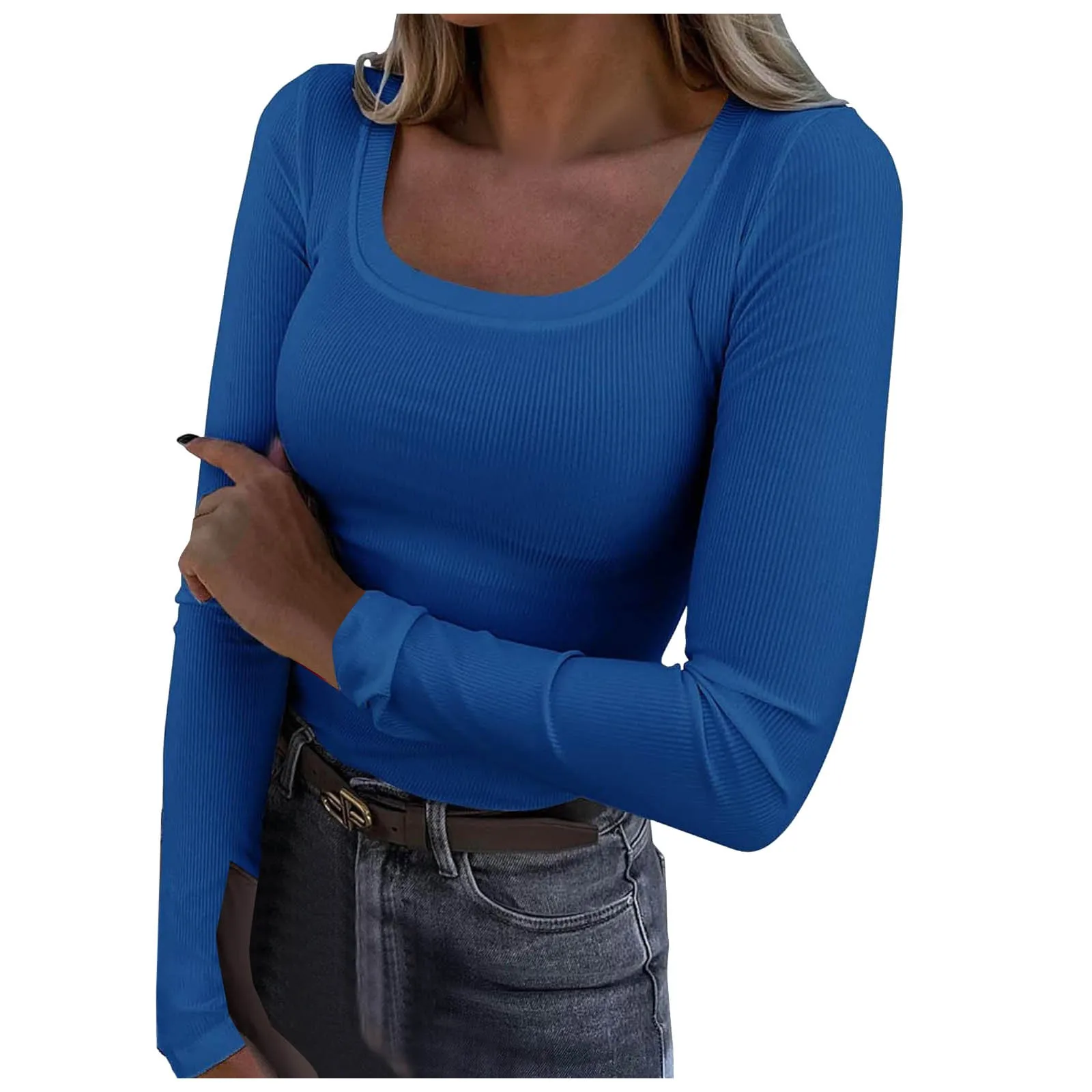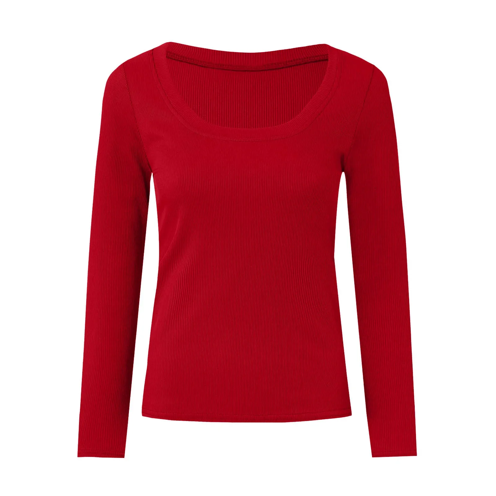 Women’s Spring And Summer Pure Color High Elastic Long Sleeved Undershirt Top