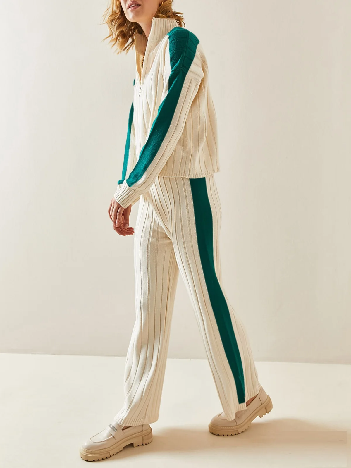 Womens 2 Piece Sweater Sets 2024 Autumn/Winter Half Zip Long Sleeve Pullover Wide Leg Pants Color Block Lounge Tracksuit Outfits