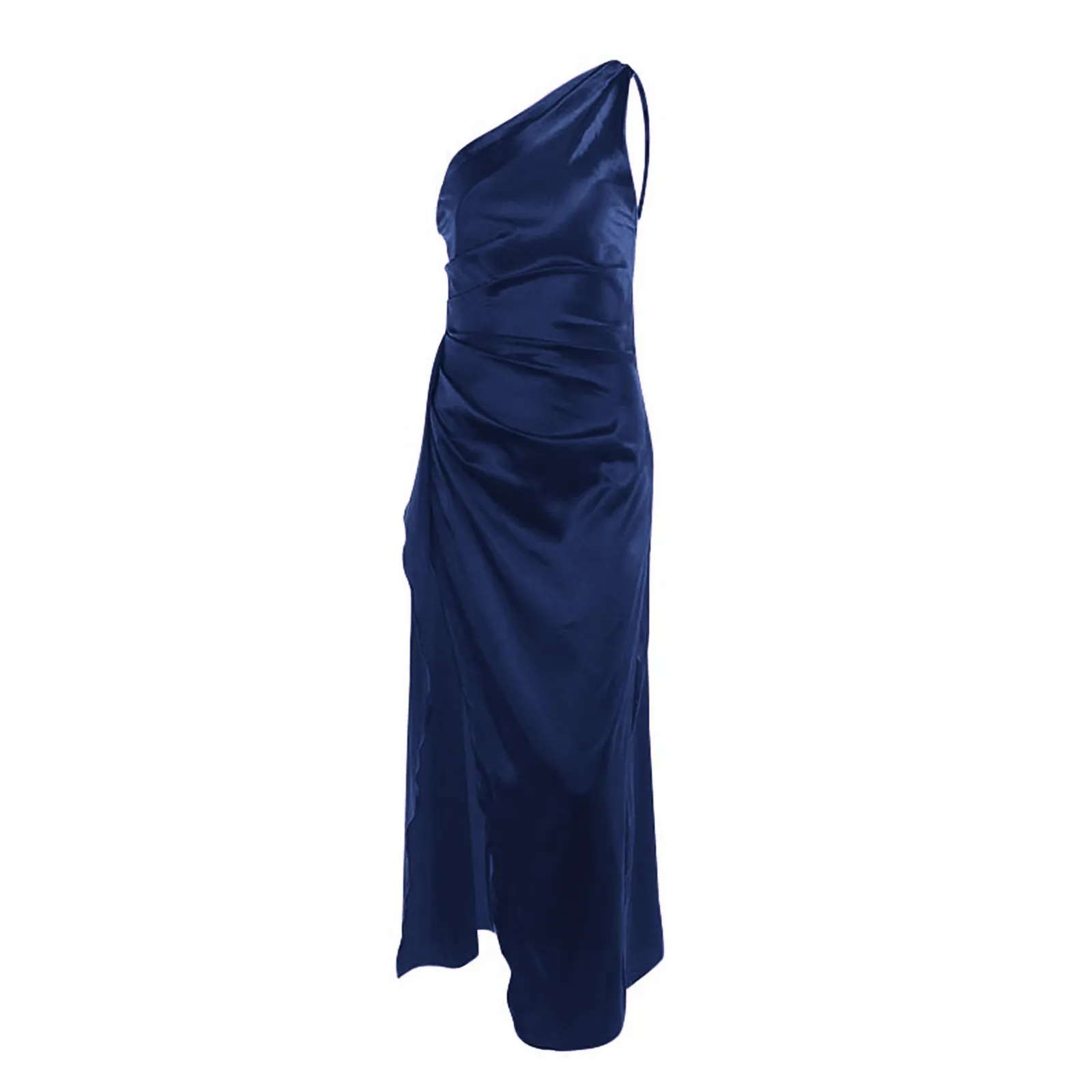 Feature:With draped detailing and one shoulder design,the maxi dress sweeps the floor and is complete with a high split,adjustable back strap detail.