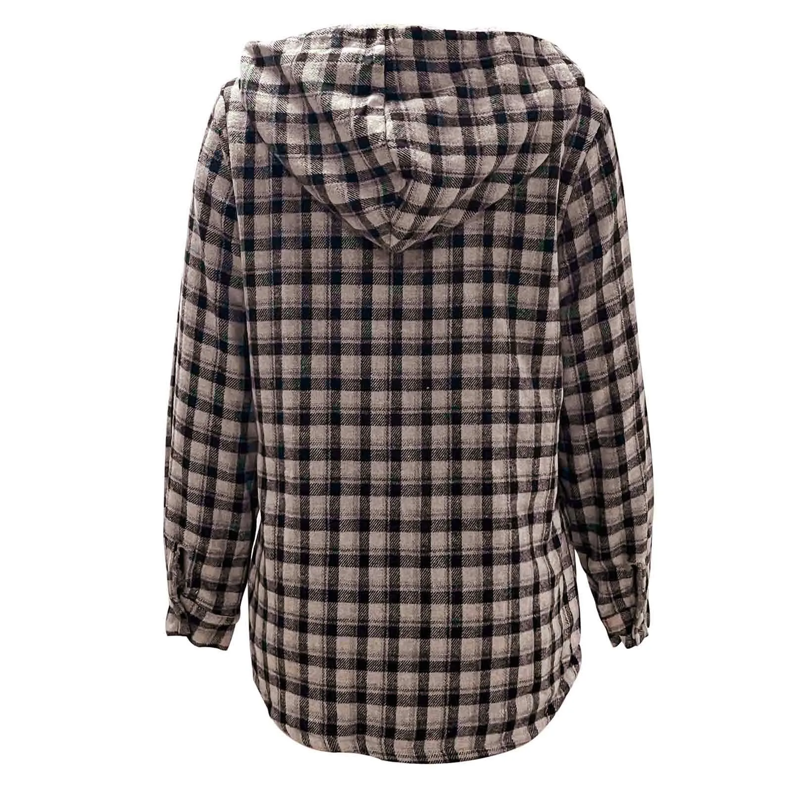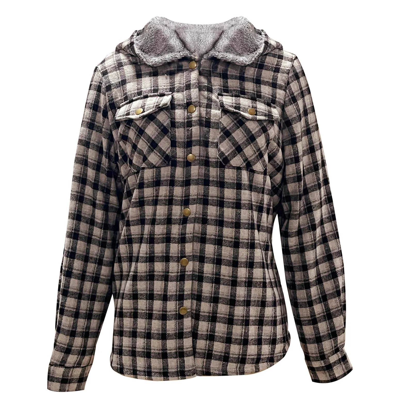 Womens Plaid Shacket Jacket Long Sleeve Button Down Fleece Hooded Jackets Warm Coat For Women